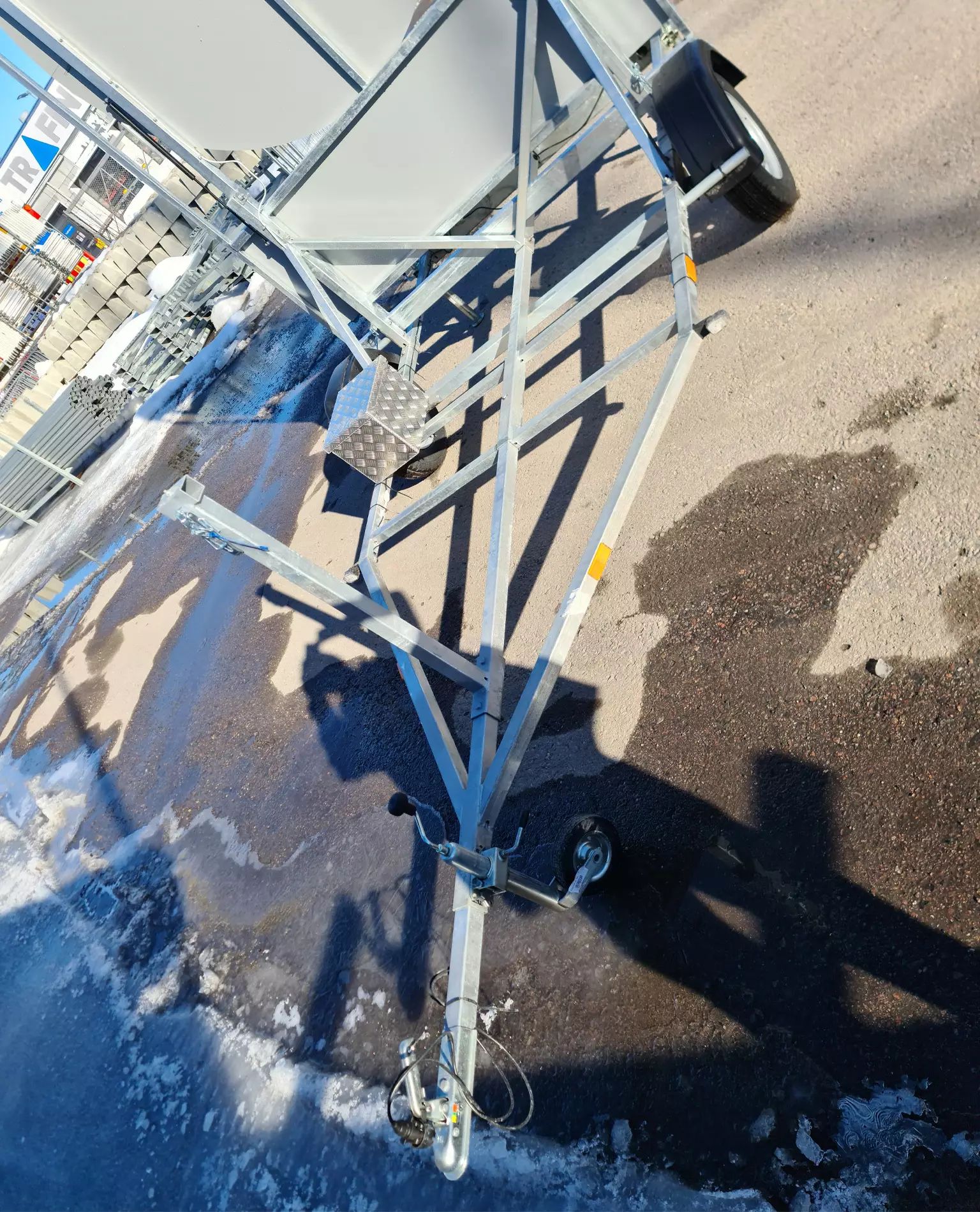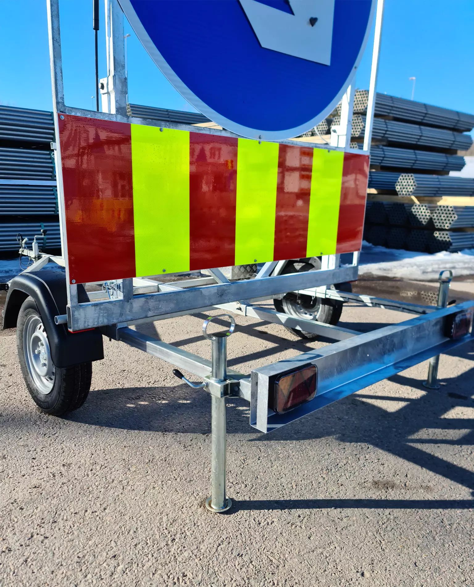 Introducing the towable traffic barrier – an excellent solution for traffic control and safety assurance at construction sites. This domestic traffic barrier has been designed in collaboration with experienced users and offers several advantages, including LED tail lights, a gas spring-assisted lifting and lowering mechanism, and a sturdy support leg with a wheel for easy maneuverability. The 12-24V operating voltage and reflective panels ensure visibility and safety. The balanced structure allows for single-person operation. Order now to ensure smooth and safe traffic arrangements!